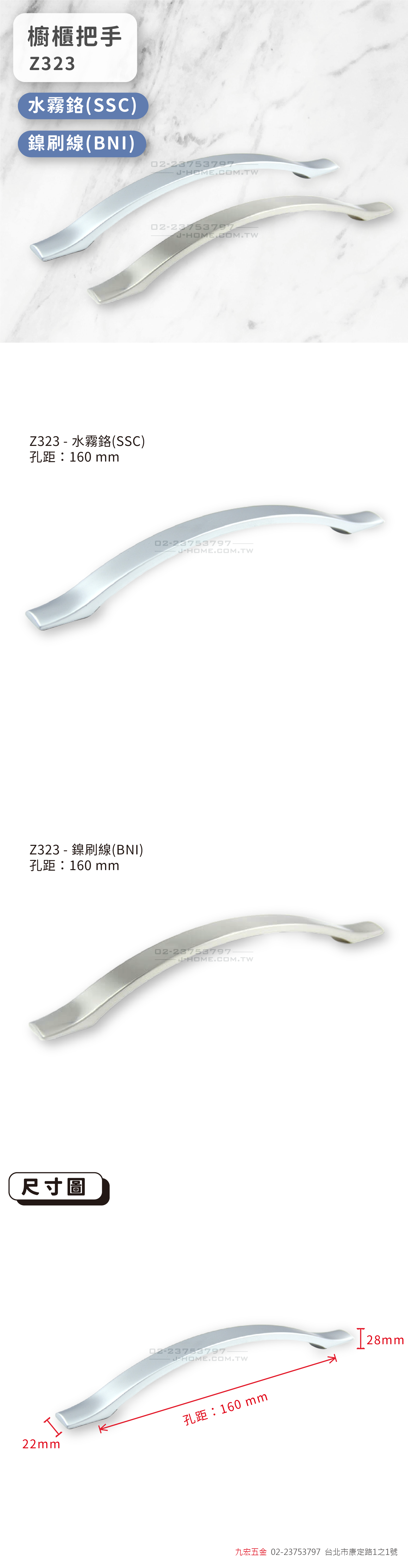 產品介紹 典雅流線弧形把手,觸感溫潤,握持舒適。 水霧鉻與霧面鎳拉絲雙色選擇,質感非凡。 設計簡約大方,輕鬆提升櫥櫃與抽屜品味。 為您的居家空間注入一絲精緻與實用性。 產品規格 品名 Z323 櫥櫃把手 規格 孔距 包外尺寸 160 mm 160 mm L210*W22*H28 mm 材質 鋅 顏色 水霧鉻 鎳刷線 #Z323 #櫥櫃把手 #抽屜把手 #弧形把手 #家具五金 #居家裝潢 #現代風格 #把手 #室內設計
