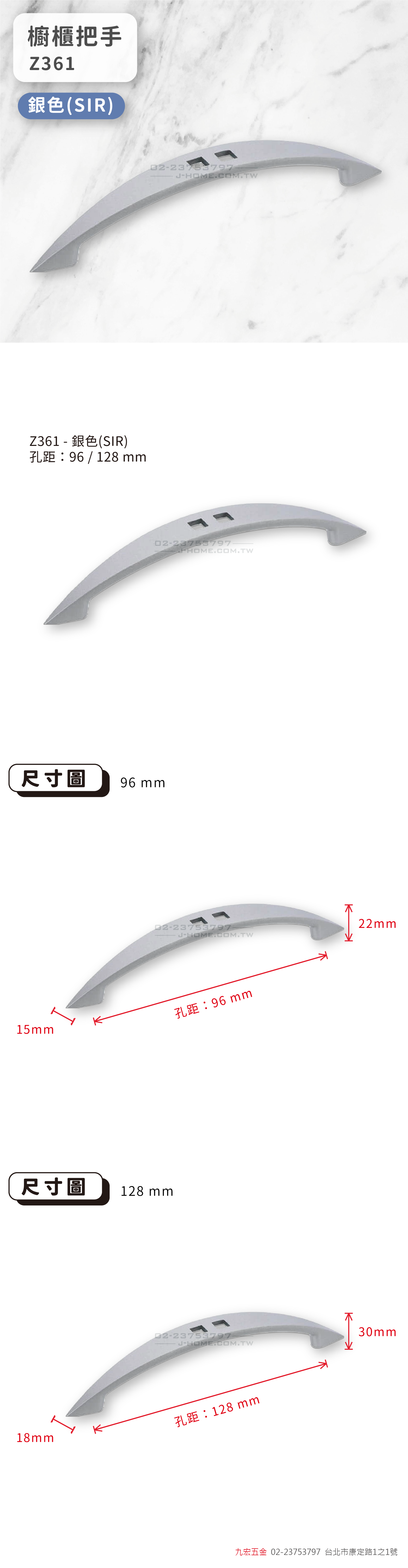 產品介紹 簡約彎月造型把手,流線設計,觸感順滑。 經典銀色系,百搭各式櫥櫃與家具。 提供多種孔距選擇,滿足不同安裝需求。 為您的居家空間增添一抹現代簡約的風格。 產品規格 品名 Z361 櫥櫃把手 規格 孔距 包外尺寸 96 mm 96 mm L125*W15*H22 mm 128 mm 128 mm L162*W18*H30 mm 材質 鋅 顏色 銀色 #Z361 #櫥櫃把手 #抽屜把手 #簡約設計 #家具五金 #居家裝潢 #現代風格 #把手 #室內設計