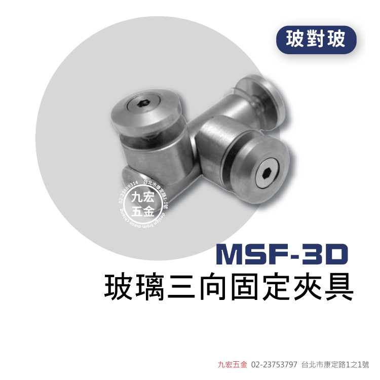 產品說明 品名 MSF-3D (玻對玻) 玻璃厚度 10 ~ 12 mm 承重 80 kg / 2pcs 材質 SUS316 實心不銹鋼 顏色 白鐵色 #MSF-3D #MSF #三向 #玻對玻 #20mm #圓柱型玻璃固定座 #玻璃夾具 #玻璃固定座 #玻璃五金
