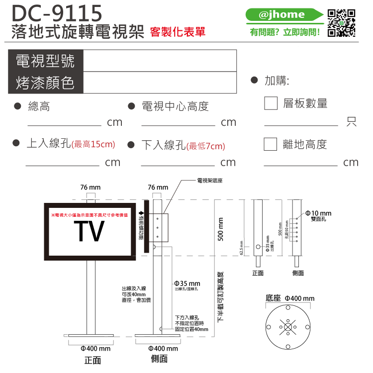 (最高可訂製 總高150cm) (如下圖尺寸表) | |