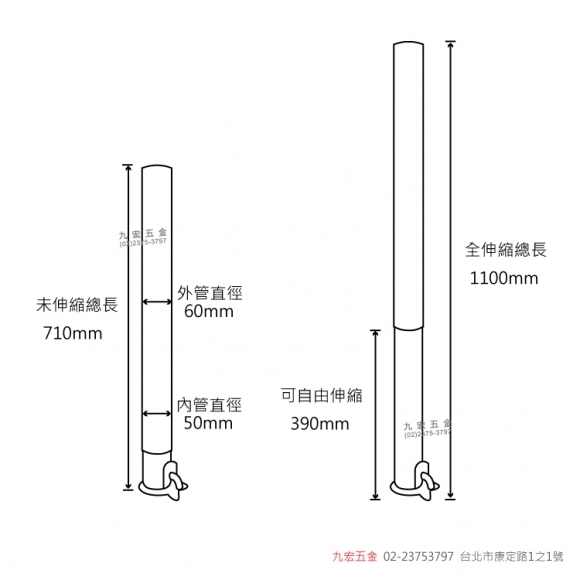 尺寸 | Ø60*H710mm ~ 1100mm |