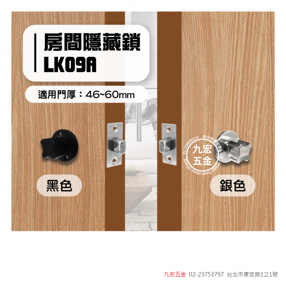 產品特色 搭配圓型蓋子造型的水平鎖使用 並且附上簡易鑰匙使內外邊皆有上鎖的功用 通常用於房間門使用。 產品介紹 品名 LK09A 房間隱藏鎖 鎖體挖孔 12 mm 適用門厚 46~60 mm 鎖心距離 60 mm 材質 鋅合金 顏色 銀色 黑色 附件 key*1 #LK09A隱藏鎖 #LK09A #隱藏鎖