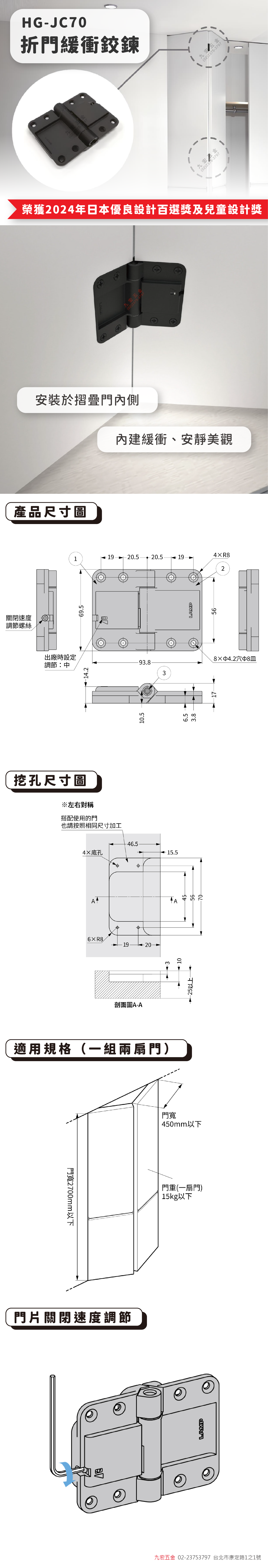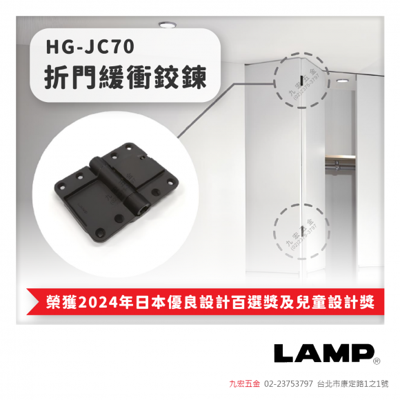 #折門鉸鍊 #緩衝鉸鍊 #靜音門鉸鍊 #可調速鉸鍊 #摺疊門五金 #日本LAMP #摺疊門專用 #兒童安全鉸鍊 #HG-JC70