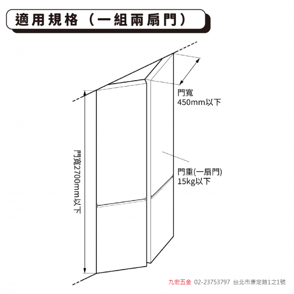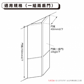 適用門片(一片門) | W450*H2700 mm (三片鉸鍊/門) |