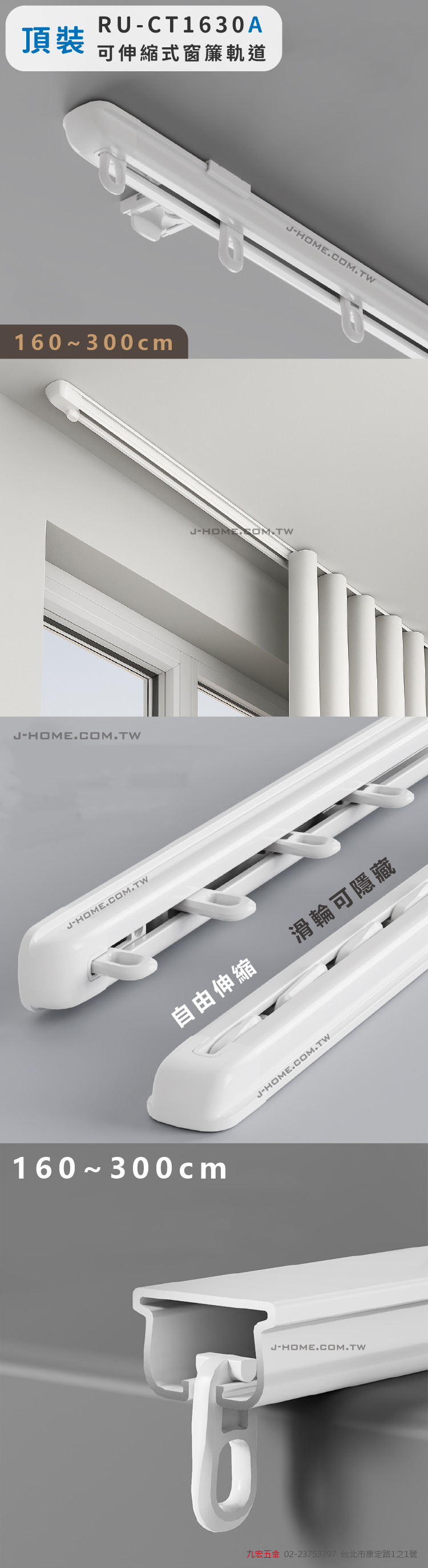 品名 | RU-CT1630A 頂裝可伸縮式窗簾軌道 |