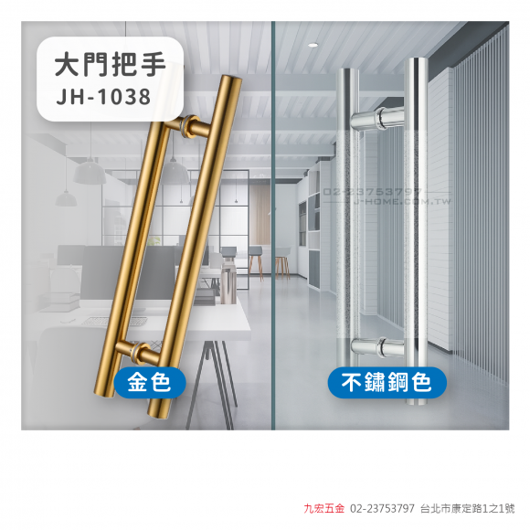 產品介紹 搭配圓桿設計,握感舒適、不易刮手。 採用高強度不鏽鋼,具備耐腐蝕、防鏽處理, 金屬墊片加固設計,兼顧實用與安全。 適用於玻璃門或大門,無論商業空間或居家裝潢皆能提升整體質感。 產品規格 品名 JH-1038 大門把手 孔距 400 mm 包外尺寸 L600*Ø37*H80 mm 材質 不鏽鋼 顏色 不鏽鋼色 金色 #JH1038 #JH-1038 #大門把手 #玻璃門把手 #金色把手 #不鏽鋼把手 #圓桿設計 #不刮手門把 #拉門把手 #質感門把 #商業空間裝潢 #室內裝潢五金 #不鏽鋼五金 #防鏽把手 #大門裝飾 #門把推薦