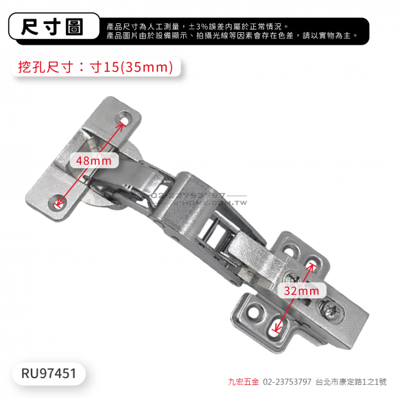 產品介紹 專為45°斜切角櫃體設計,能有效解決傳統鉸鍊無法完美對應的安裝問題! 開啟角度125°,不僅開合順暢,還能保有良好的櫃體空間使用效率。 堅固材質、結構穩定,適用於高質感系統櫃、展示櫃與特殊造型家具,是專業木工與設計師的愛用選擇! 產品規格 品名 RU97451 特殊開口緩衝鉸鍊 適用板厚 16~20 mm 挖孔 寸15 (35mm) 開啟角度 125° 材質 鋅合金 顏色 銀色 #RU97451 #西德鉸鍊 #125度鉸鍊 #45度切角鉸鍊 #櫥櫃鉸鍊 #特殊鉸鍊