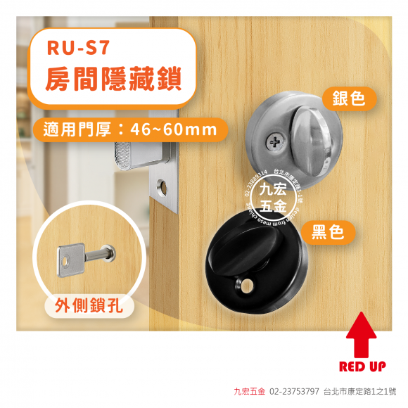 產品介紹 美觀不影響門面整體感 附專用鑰匙,使用安全又便利 高強度材質,耐用防損 適用於臥室門、辦公室暗門、儲藏室等 *內側轉扭,外側鑰匙圓洞附通用鑰匙 產品規格 品名 RU-S7 房間隱藏鎖 尺寸 Ø40 mm 鎖體挖孔 12 mm 鑰匙挖孔 12 mm 適用門厚 46~60 mm 鎖心距離 60 mm 材質 不鏽鋼 顏色 銀色 黑色 #RU-S7 #隱藏門暗鎖 #室內門鎖 #暗門鎖 #隱藏式門鎖 #銀色門鎖 #黑色門鎖 #家用門鎖 #居家安全 #辦公室門鎖 #隱私保護 #室內設計五金 #安全門鎖 #五金配件 #門鎖安裝