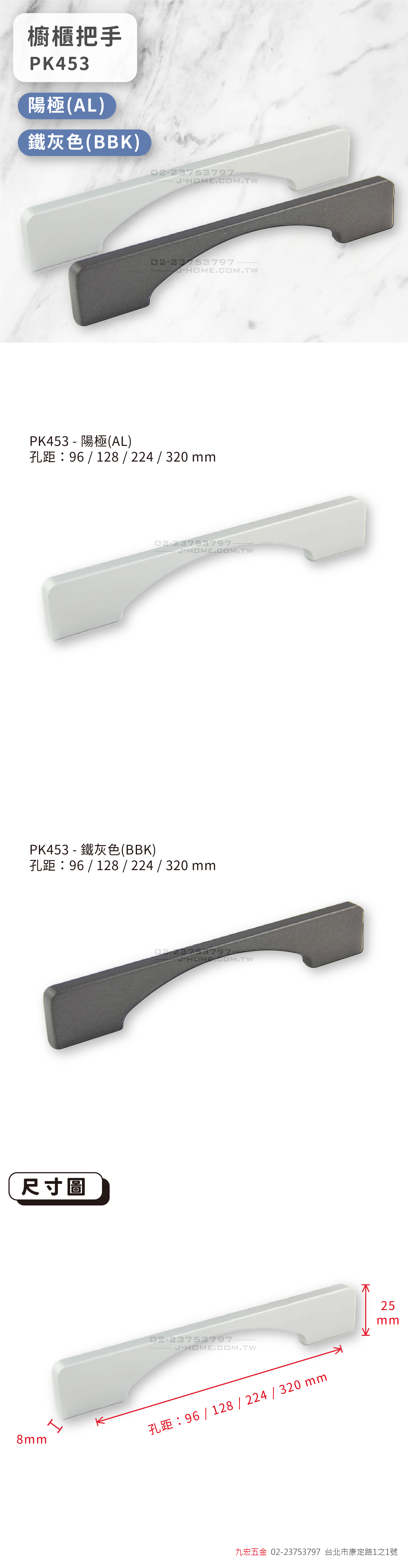 產品介紹 以其簡約而現代的設計,為您的居家空間增添一抹時尚感。 採用優質鋁合金製成,觸感舒適,經久耐用。 其獨特的弧形設計,不僅提供舒適的握持體驗,更能完美融入各種風格的櫥櫃和家具。 多種孔距選擇確保其能靈活適配不同尺寸的門板。 無論是新裝潢或舊翻新,這款把手都能輕鬆提升您的居家品味。 產品規格 品名 PK453 櫥櫃把手 規格 孔距 包外尺寸 96 mm 96 mm L126*W8*H25 mm 128 mm 128 mm L158*W8*H25 mm 224 mm 224 mm L254*W8*H25 mm 320 mm 320 mm L350*W8*H25 mm 材質 鋁 顏色 陽極 鐵灰 #PK453#櫥櫃把手 #把手 #門把 #櫃子把手 #家具把手 #抽屜把手 #廚房把手 #衣櫃把手 #現代把手 #簡約把手 #設計把手 #鋁合金把手 #磨砂把手 #家居裝飾 #五金配件 #居家改造 #櫥櫃配件
