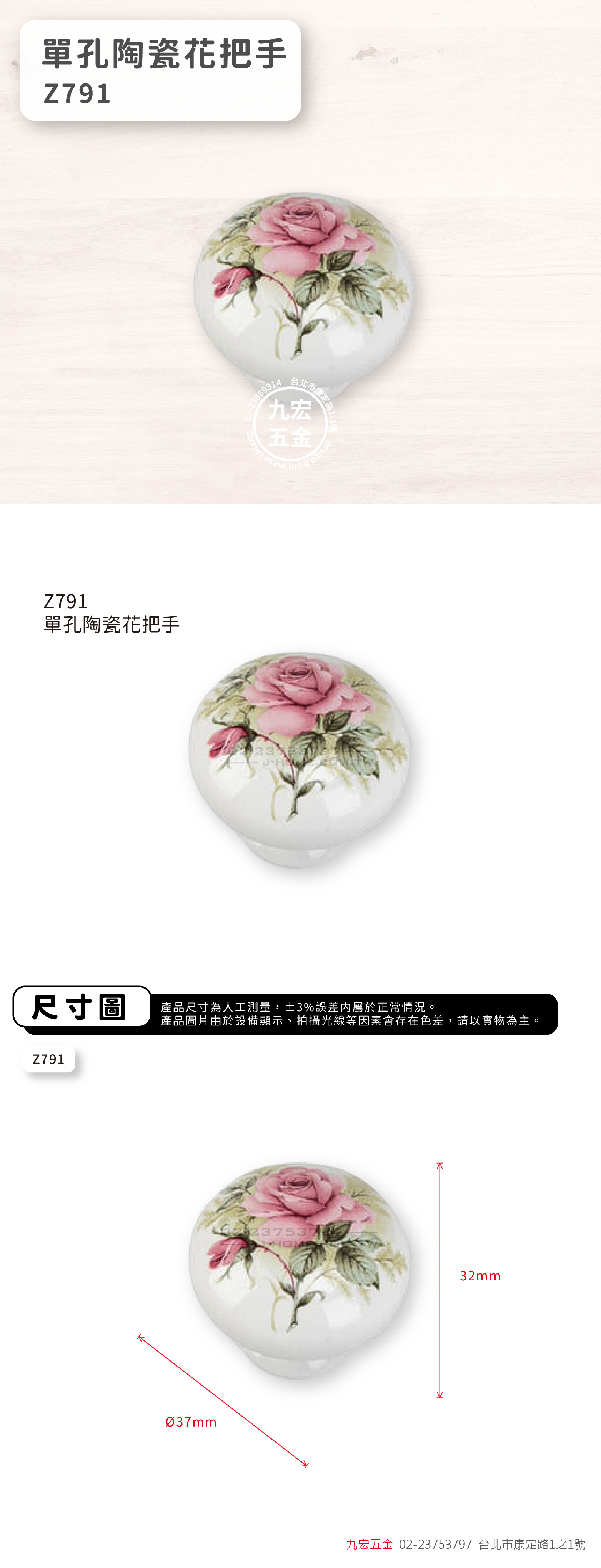 產品介紹 陶瓷材質,質感高雅耐用 獨特圖樣,營造復古與藝術氛圍 單孔安裝,簡單便利 適用於各式家具(櫃體、抽屜、門片) 產品規格 品名 Z791 單孔陶瓷花把手 尺寸 Ø37*H32 mm 材質 陶瓷 #Z791 #陶瓷把手 #單孔把手 #櫥櫃把手 #抽屜拉手 #衣櫃把手 #復古把手 #家具五金 #居家裝飾 #家具配件 #櫃門五金 #陶瓷拉手 #櫃體五金 #質感生活
