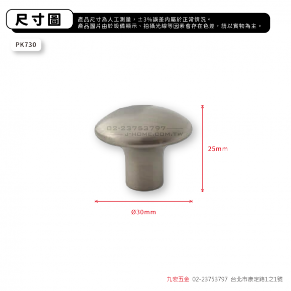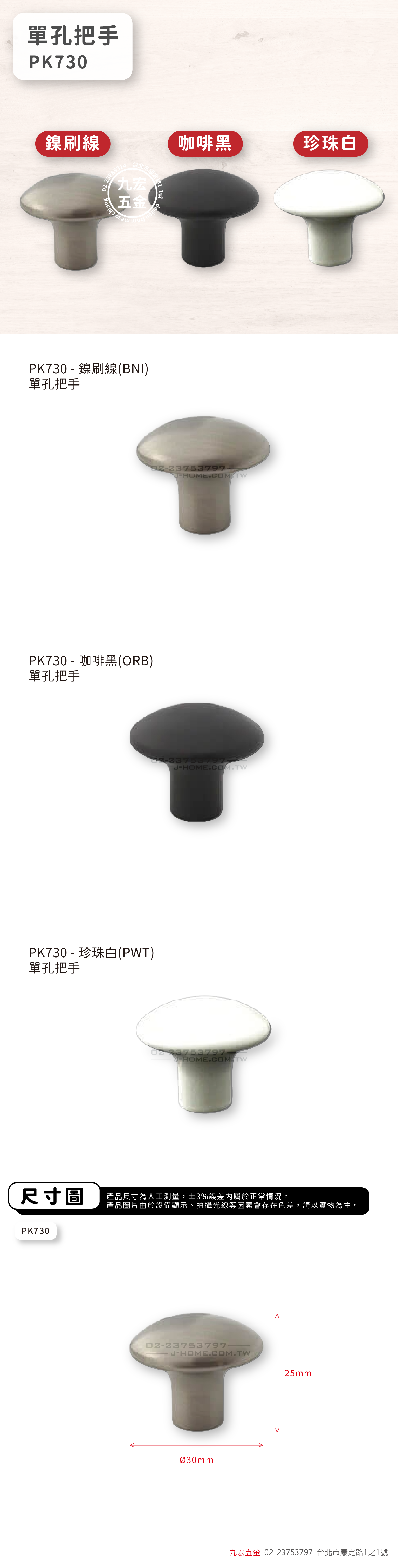 產品介紹 單孔安裝,施工簡單方便 Ø30mm 尺寸設計,手感舒適好握 適用於多種家具櫃體 耐用耐磨,外觀質感佳 產品規格 品名 PK730 單孔把手 尺寸 Ø30*H25 mm 材質 鋁 顏色 鎳刷線 咖啡黑 珍珠白 #單孔把手 #PK730 #鎳刷線把手 #咖啡黑把手 #珍珠白把手 #櫥櫃把手 #抽屜拉手 #衣櫃五金 #家具把手 #收納櫃把手 #家具五金 #室內設計五金 #櫃門五金 #居家裝飾五金 #簡約把手