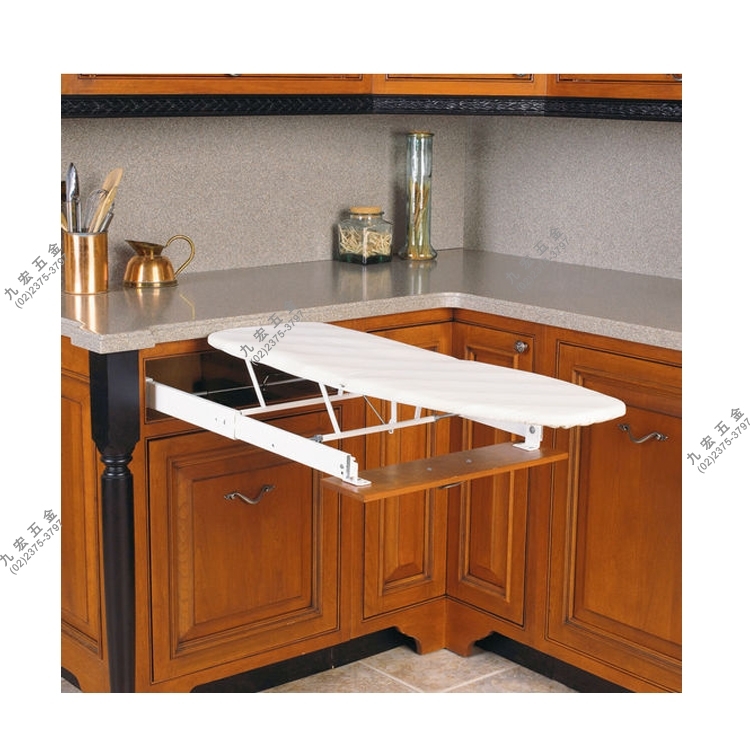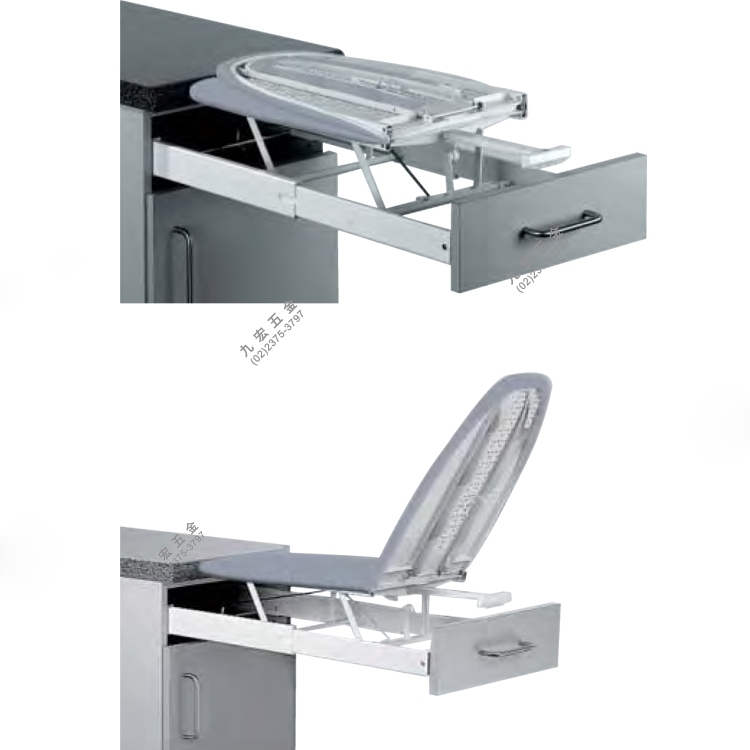 可折疊,抽出抽屜時燙衣板面的支架會自動伸出