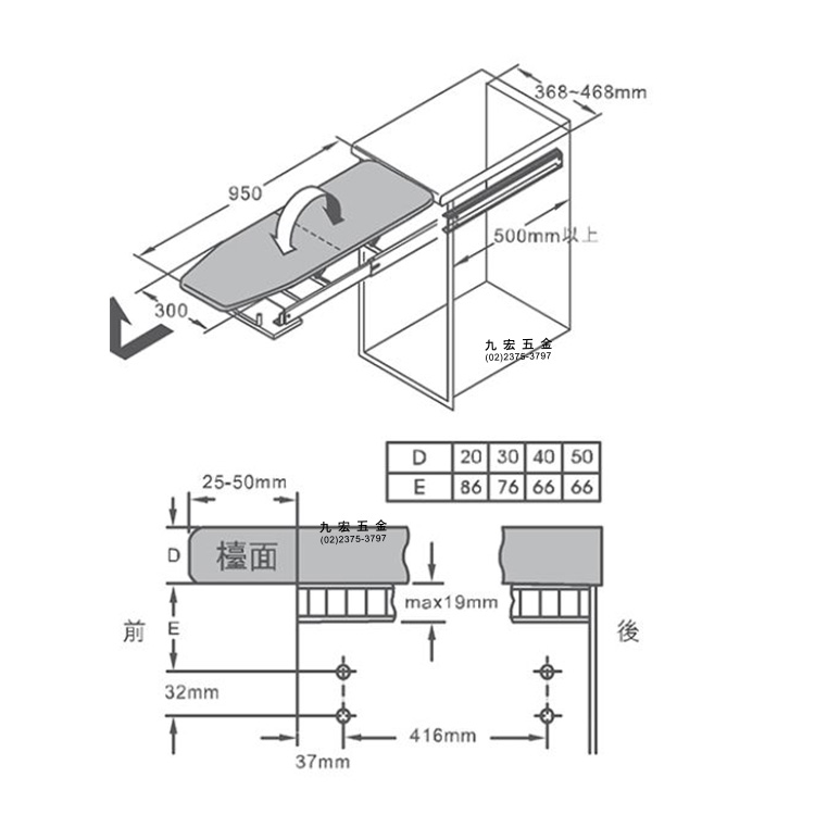 HAFELE 燙衣板 | 368 ~ 468 mm | 500 mm以上 | 150 mm以上 | |